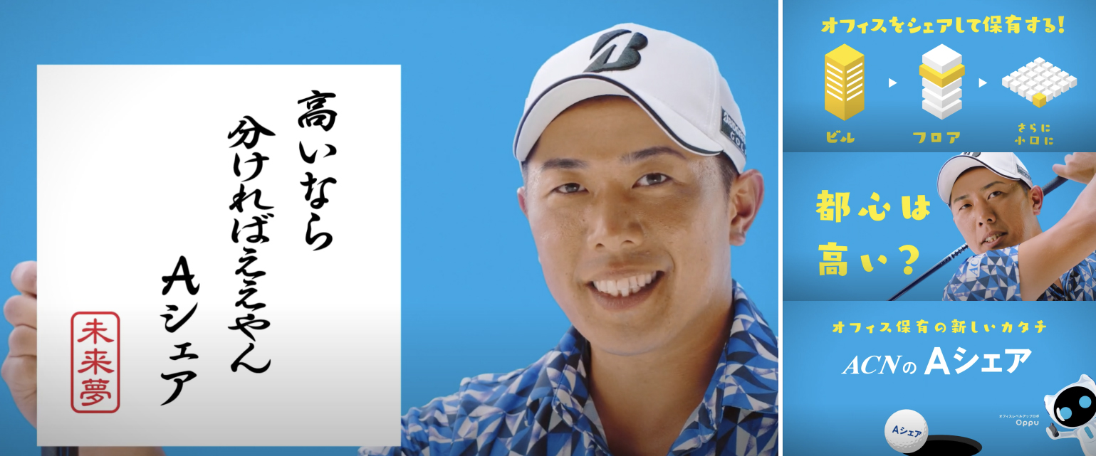 この度、ACNとスポンサー契約を締結しているプロゴルファー堀川未来夢選手が出演した新CMが完成致しました。得意のゴルフを活かし、アニメーションの世界で不動産のサービス紹介を行います。